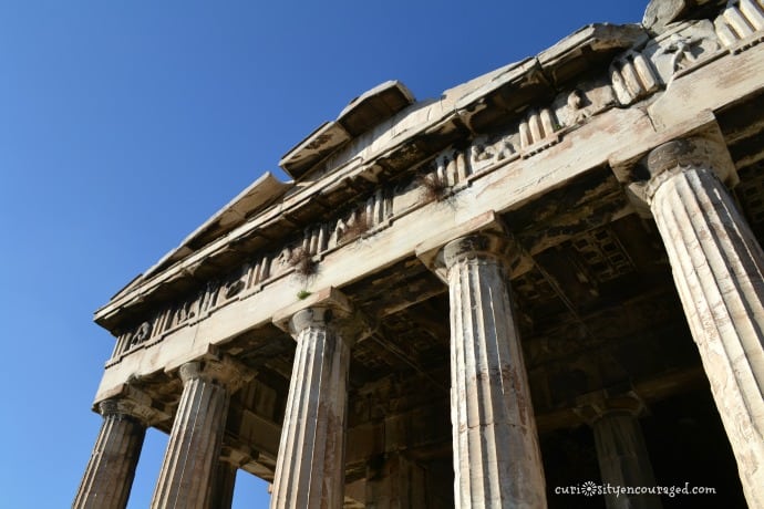 The Ancient Athens Agora (public space for gatherings and markets) is a beautiful place to explore. You’ll find the Temple of Hephaestus.